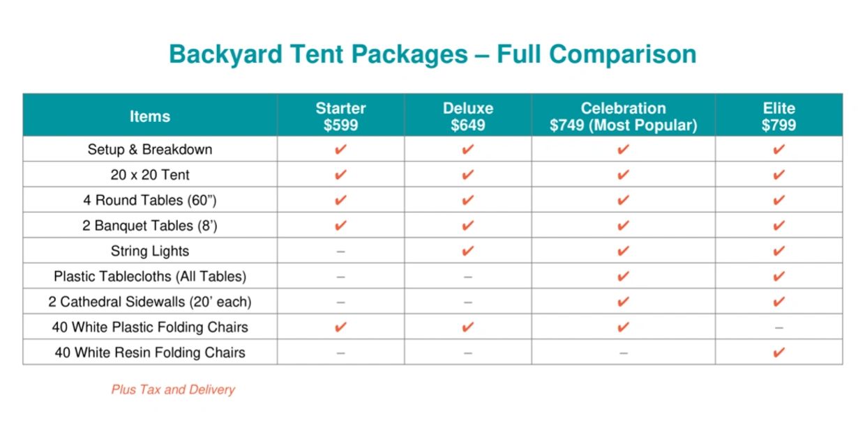 From full Backyard Tent Packages to individual rentals. Need a full setup or just a few chairs? We’ve got you covered!